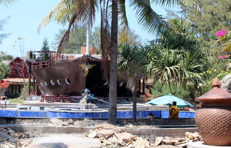Les nouvelles constructions vont bon train et la tendance semble être la démesure à l’image de ce complexe en construction lors de mon passage avec ce paquebot surplombant la piscine !